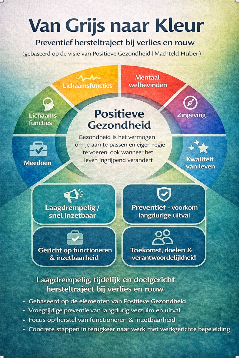 Ik werk niet met vaste modellen maar baseer mijn begeleiding wel op de positieve gezondheid van Machteld Huber. Daarnaast sluit ik aan bij wat er op dat moment nodig is. Soms met woorden, soms met stilte, de natuur of creatieve en systemische werkvormen – altijd afgestemd op jou.